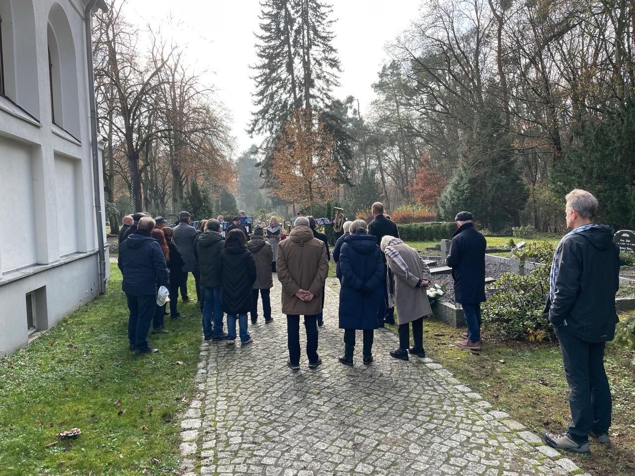 Zum Gedenken und zur Erinnerung an Kriegstote und Opfer von Gewaltherrschaft fand am Volkstrauertag, 16.11.2025, eine gemeinsame Kranzniederlegung durch Bürgermeisterin Claudia Nowka und Pfarrer Michael Dürschlag auf dem Michendorfer Friedhof statt.